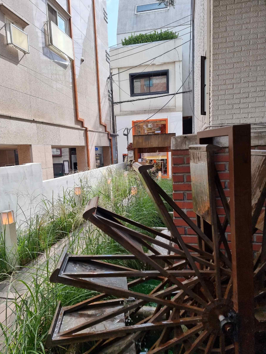 주택가여서 특별한 뷰가 없었는데, 갈대도 심어 놓고 물레방아에서 물소리도 들리고 하니, 좋더라고요.ㅎㅎ